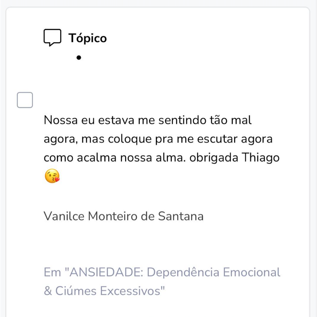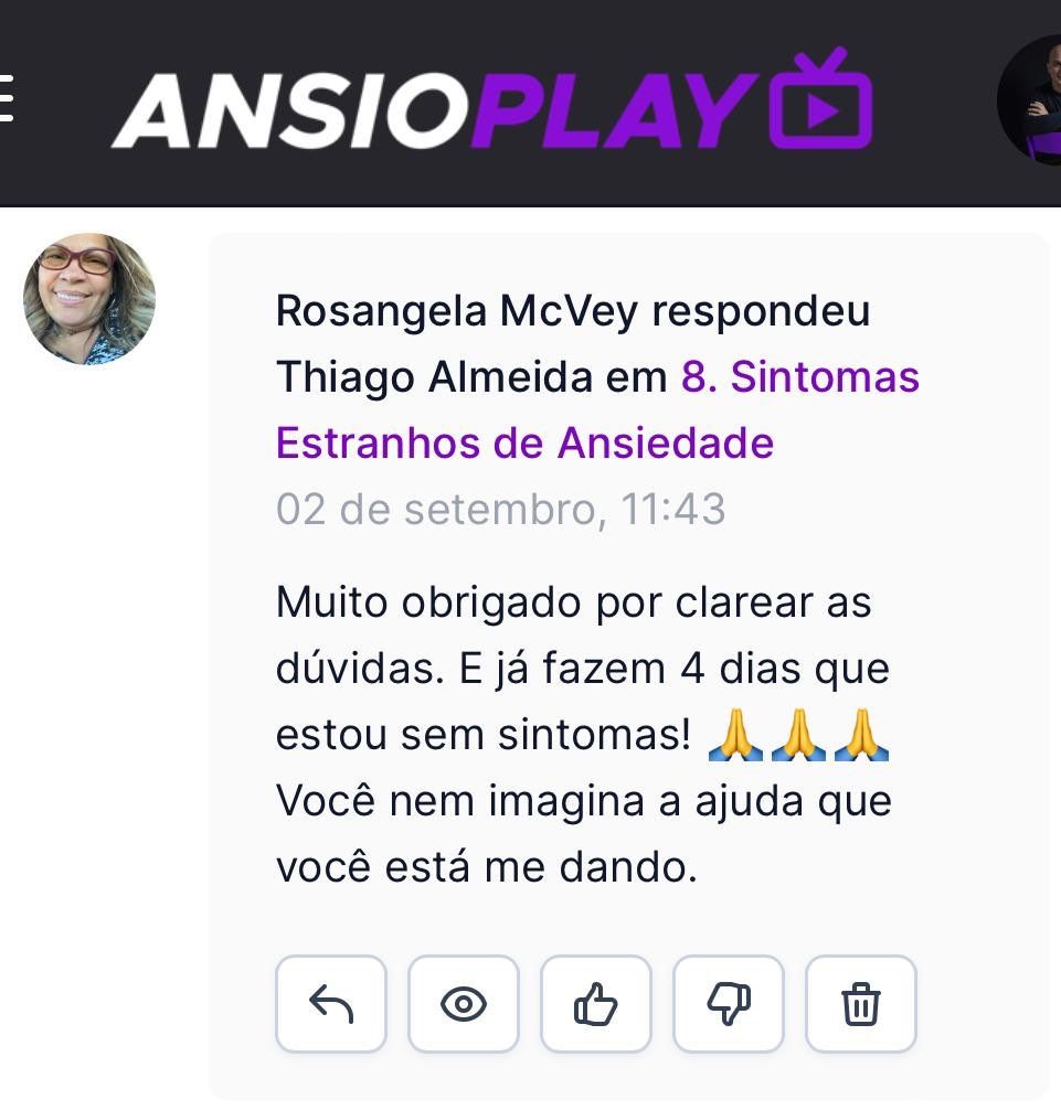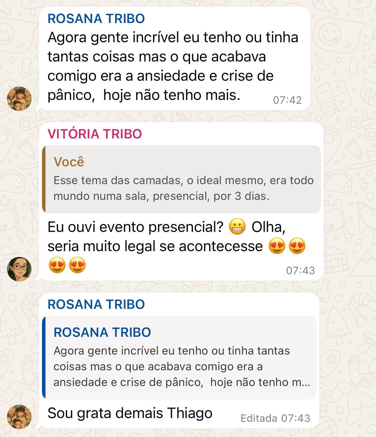 Como aluna(o) do ANSIOPLAY, você terá a oportunidade de participar da TRIBO Sem Ansiedade, onde será acompanhada semanalmente pelo Thiago Almeida, para tratar a verdadeira causa do transtorno de ansiedade: a 4ª camada da personalidade.